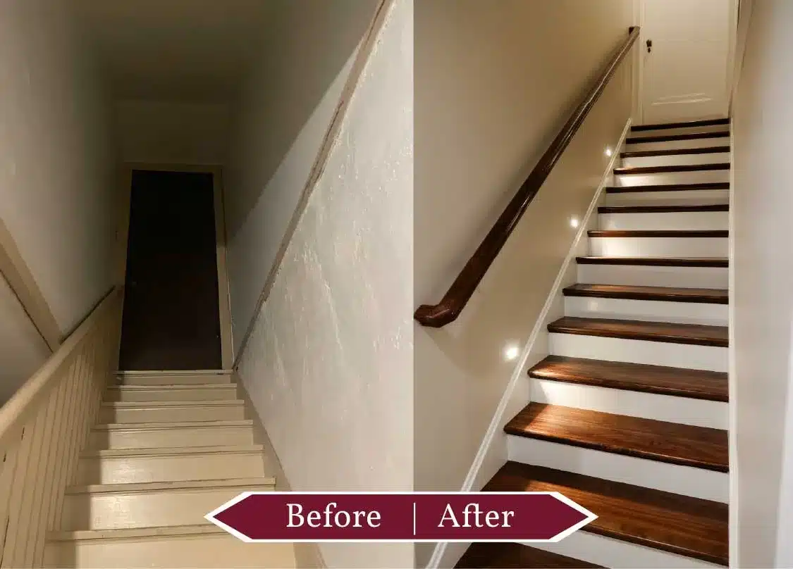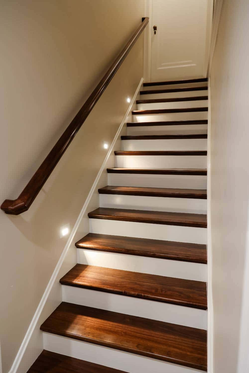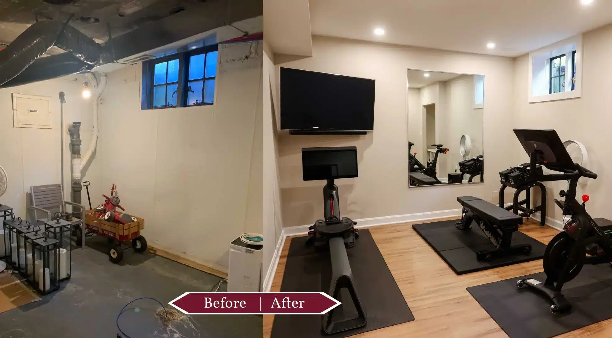The finished basement is now a true extension of the home. With luxury vinyl plank flooring underfoot, thoughtful design touches throughout, and plenty of storage tucked into creative places, the space feels intentional and inviting. The existing wine cellar was seamlessly worked into the final layout, while iron stair railings and original materials were preserved and enhanced to honor the home’s history.