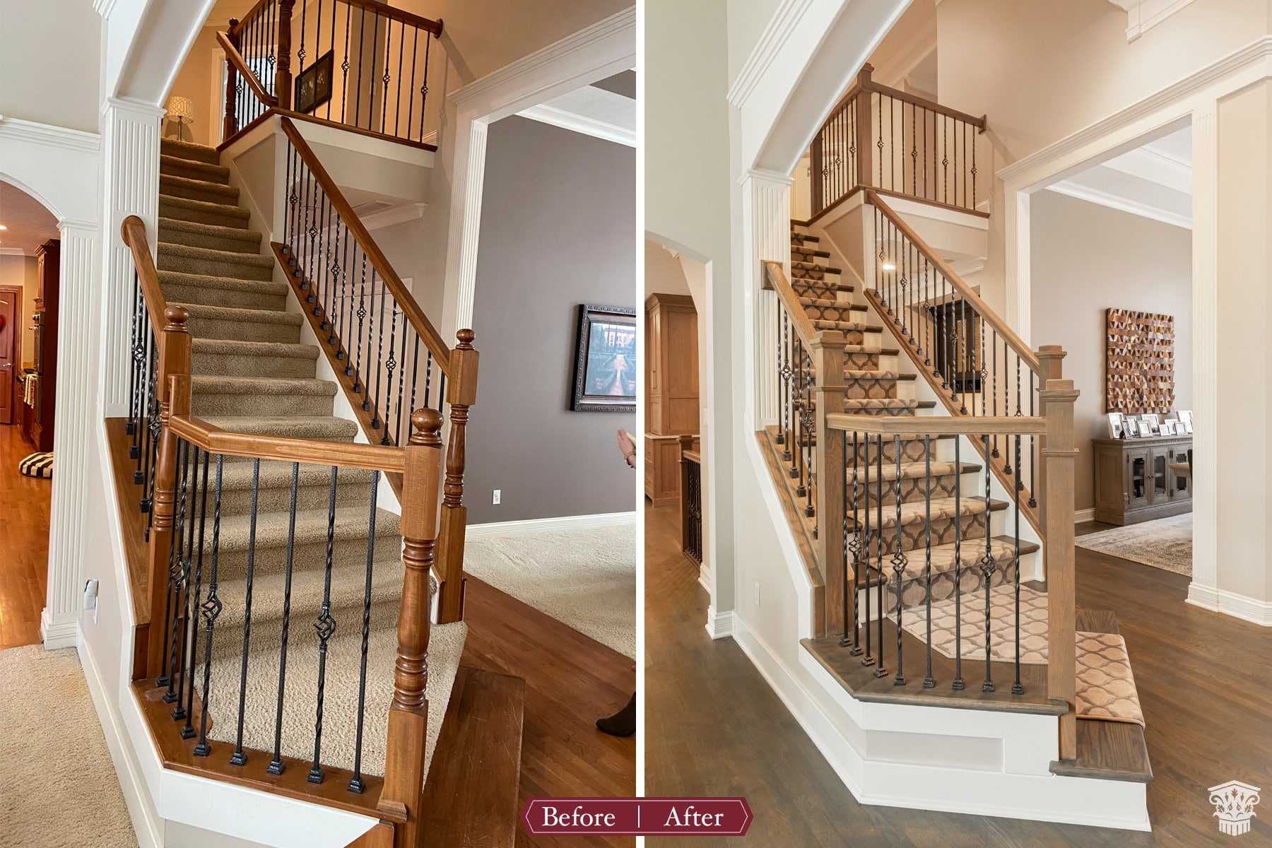 We also removed the carpet in the family room, stairs and dining room and added hardwood flooring in areas and refinished the hardwoods in other areas.