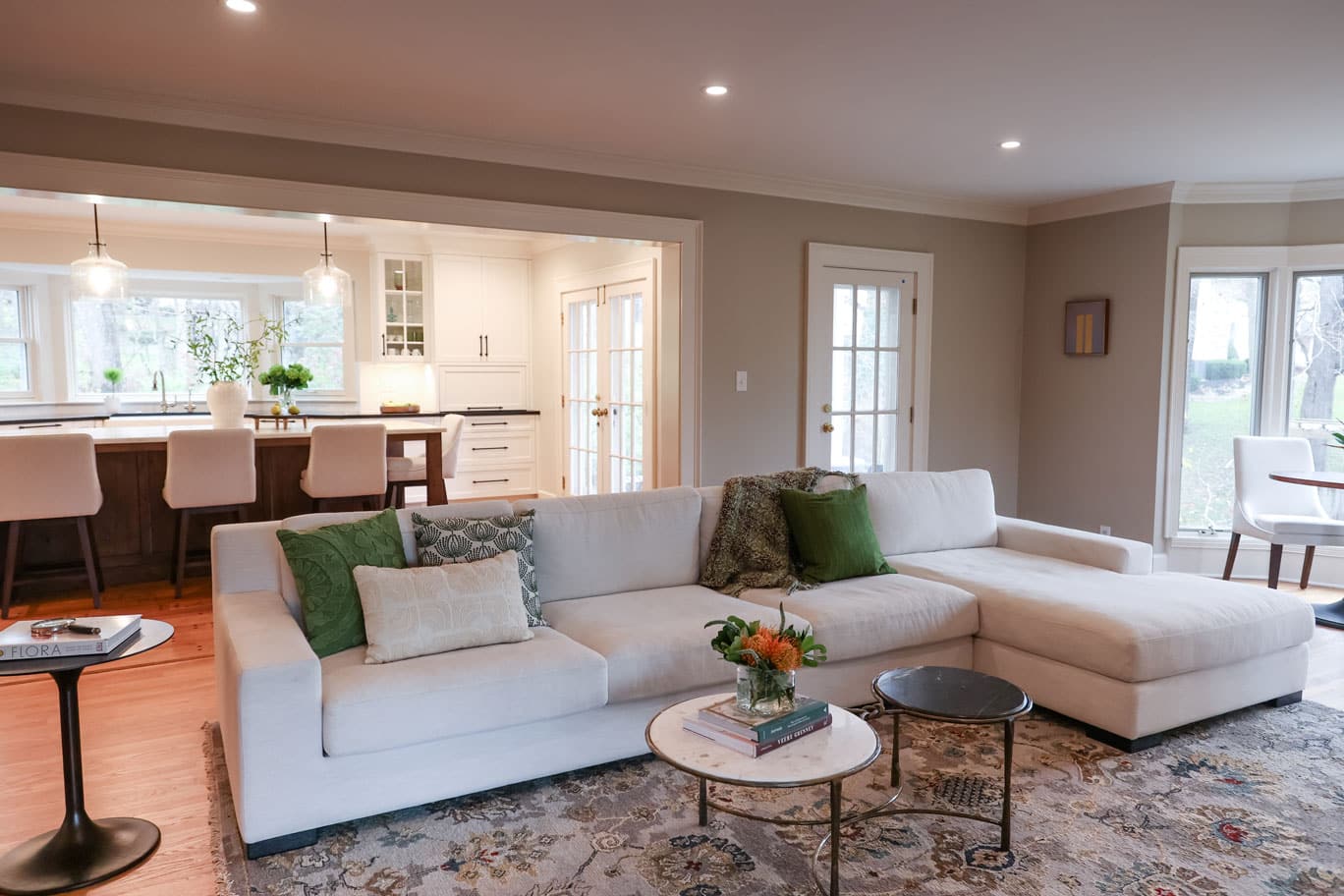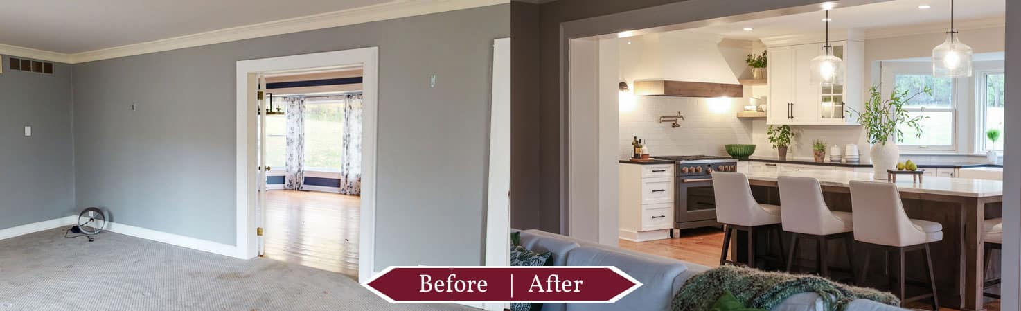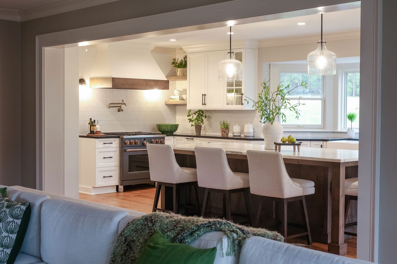 Nestled on a 10-acre estate in Zionsville, this 1900s farmhouse needed a thoughtful transformation to better suit the homeowners’ lifestyle. As empty nesters with busy schedules, they wanted a space that embraced modern farmhouse style, improved functionality, and allowed for seamless interaction between the kitchen and living areas.