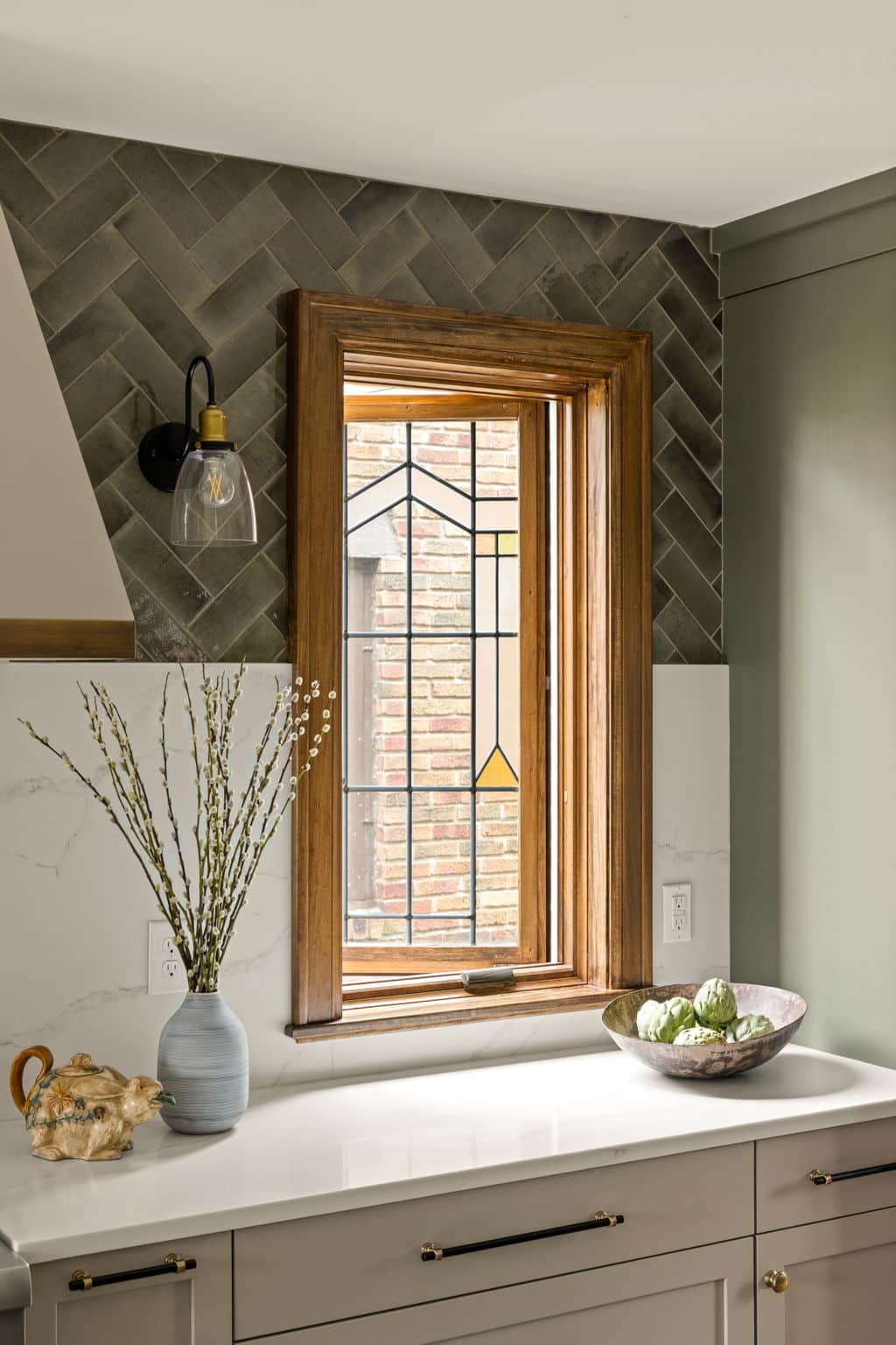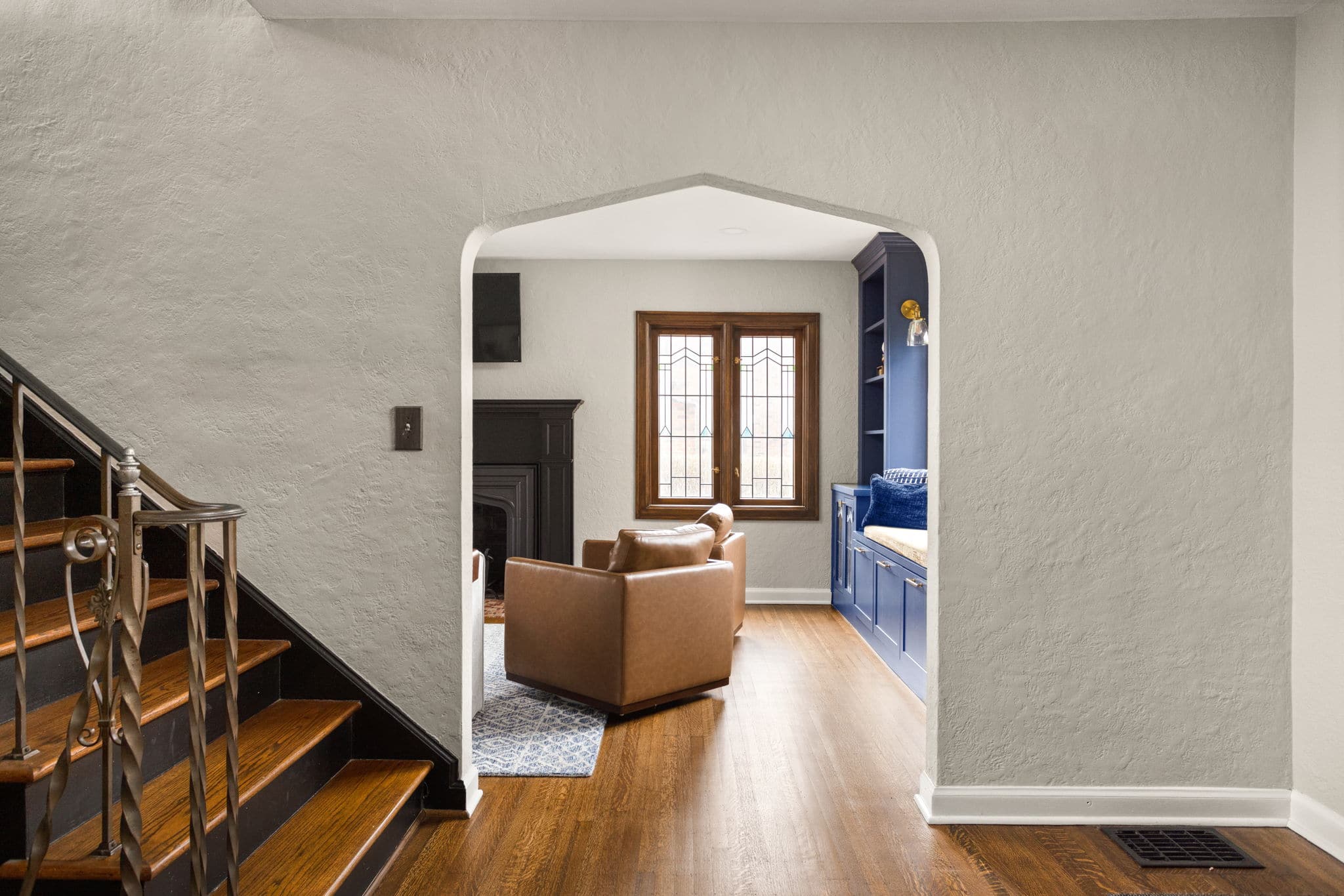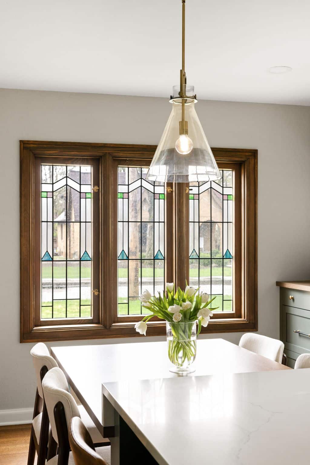 The highlight of the project was preserving the original leaded glass components of the home’s historic windows. We worked with local partners to install PELLA replacement windows with historical features, like a casement-style opening, and the original leaded glass components included in the window panes for an authentic replica of the original aesthetic with the convenience, energy efficiency, and security of a modern window!