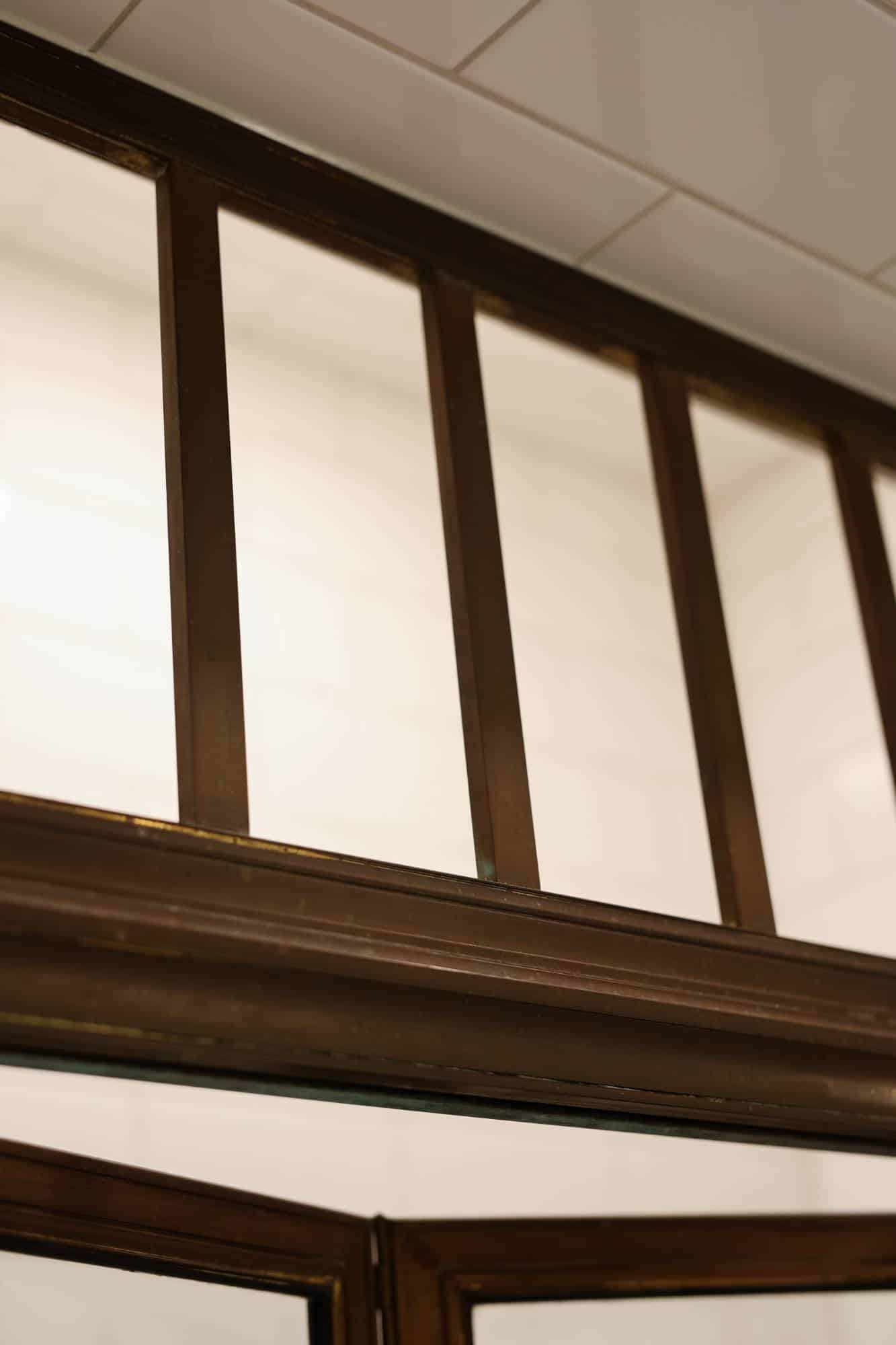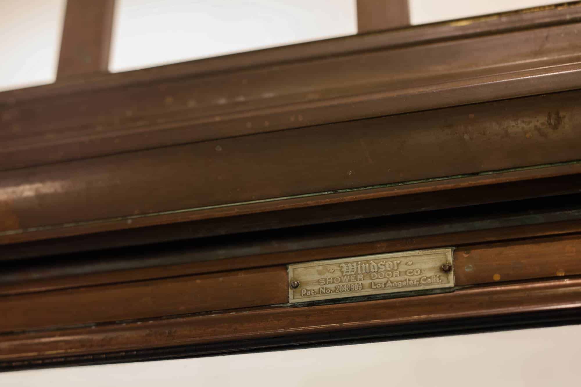 Original Shower Door Restored: The showstopper in this guest suite is the beautifully preserved brass Windsor shower door, a striking architectural feature dating back to the home’s original build. Its artful upper grilles and bold framing give the bathroom a center of gravity, around which the rest of the design gracefully revolves.