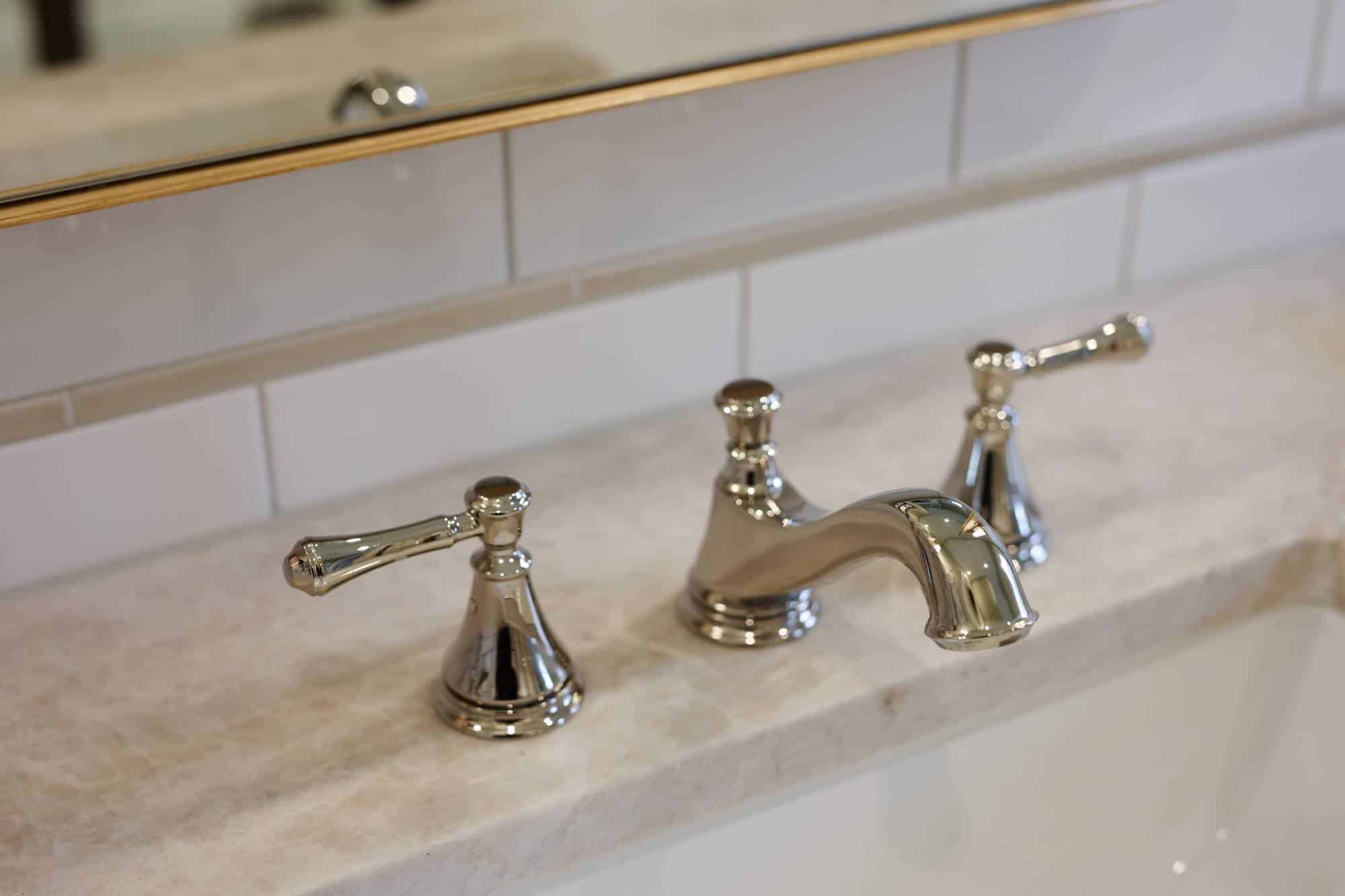 Each design choice in the guest bathroom was made to strike a balance between old-world elegance and present-day luxury.
